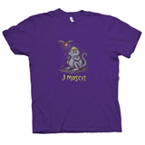 Baby dino design on a purple Anvil t-shirt. 100% cotton.