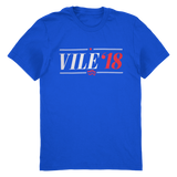 Vote Vile! 'Vile '18' artwork on a royal blue T-shirt.