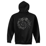 Schneider TM '’Spiral’  & 'The 8 of Space‘ logo (small)dark silver print on a black Gildan Heavy Blended Hooded Sweatshirt. 100% cotton.