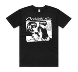 Printed on a black Gildan Heavy T-shirt. 100% cotton.