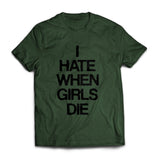 I Hate When Girls Die design printed on a forest green AS Colour Block T-Shirt. 100% cotton.